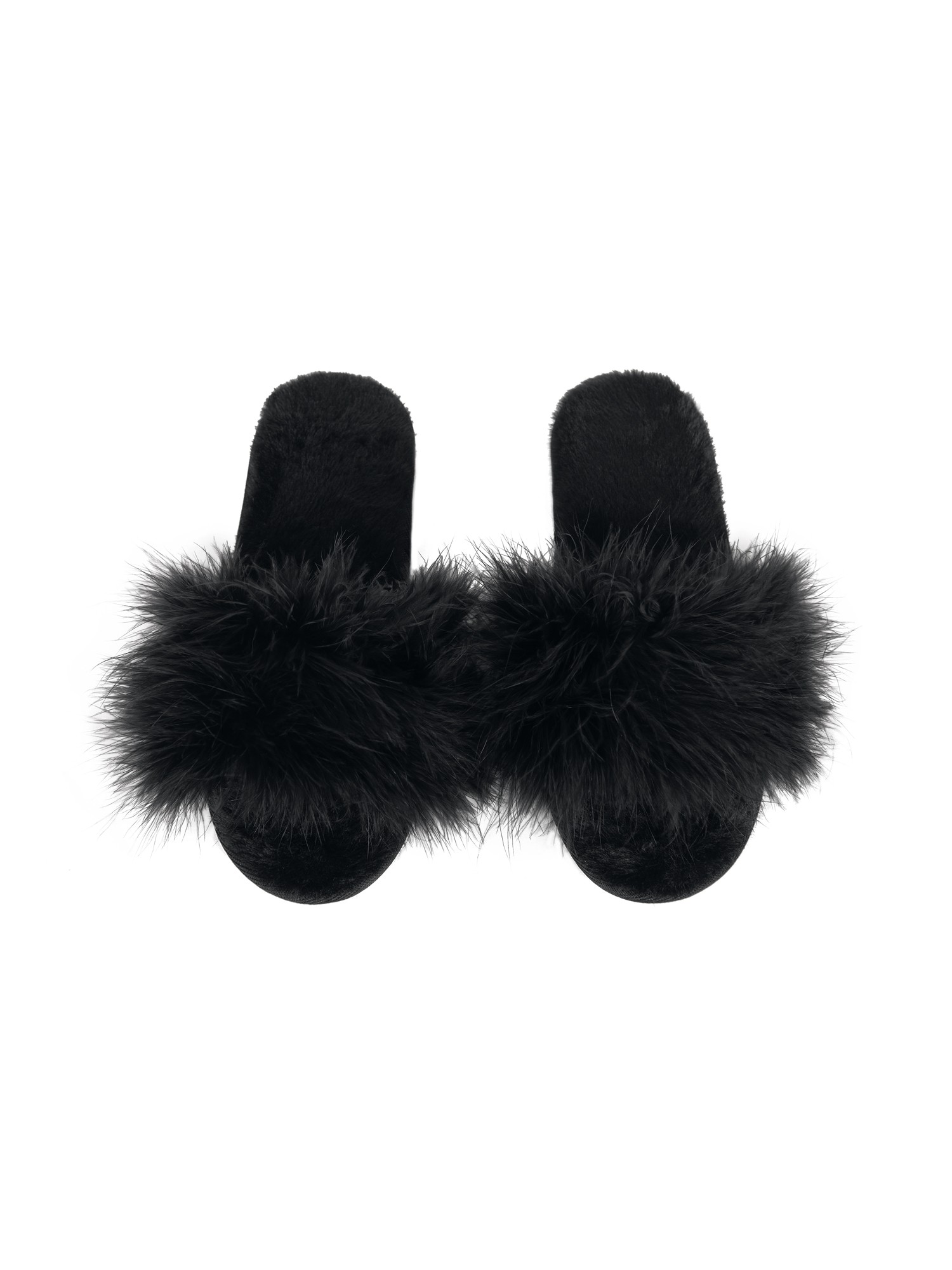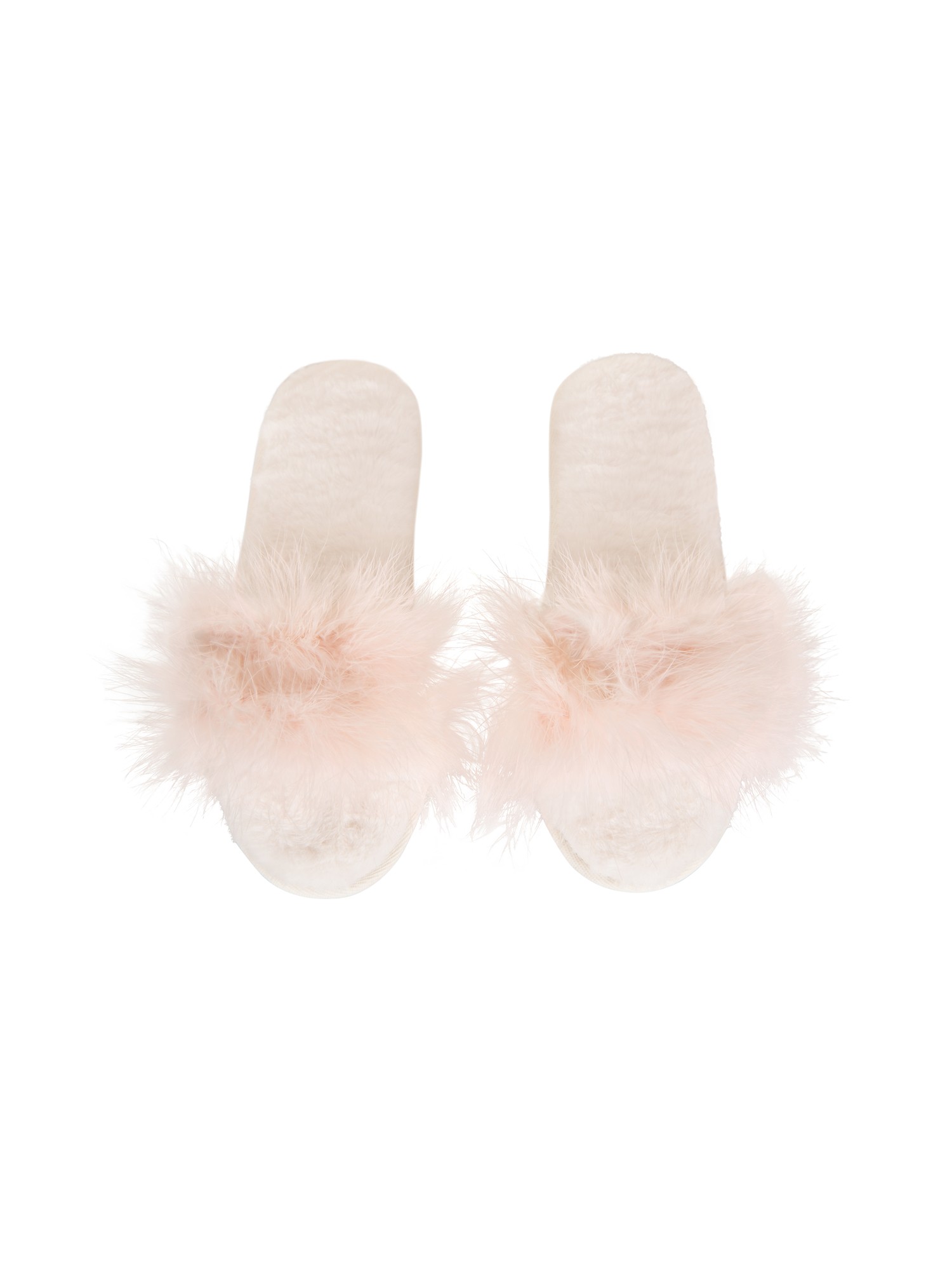Pantoufles confortables avec un détail en fourrure sur la partie supérieure. La semelle est souple avec une application antidérapante à pois.