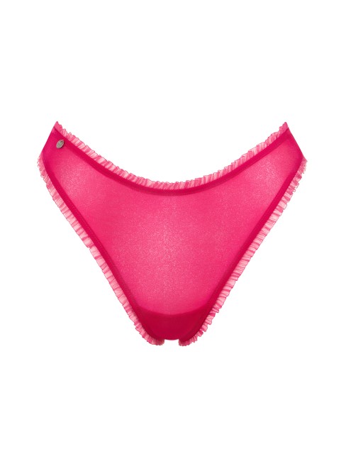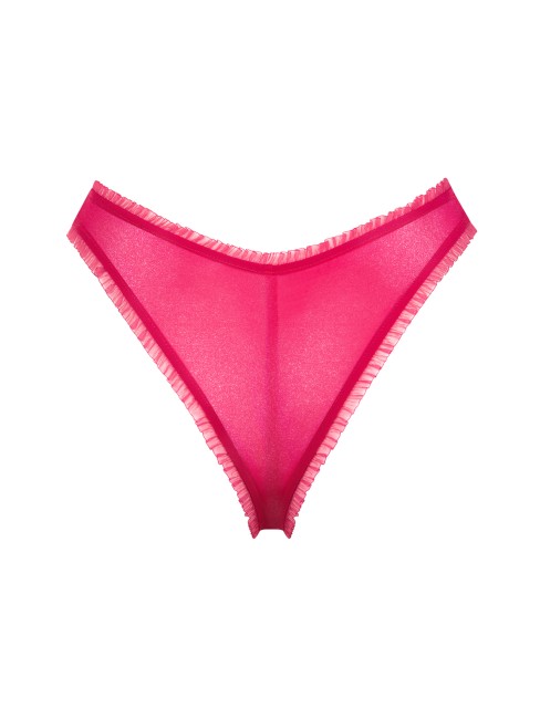 Brésilien échancré dans un à jambes hautes avec des volants décoratifs à la taille et aux cuisses.