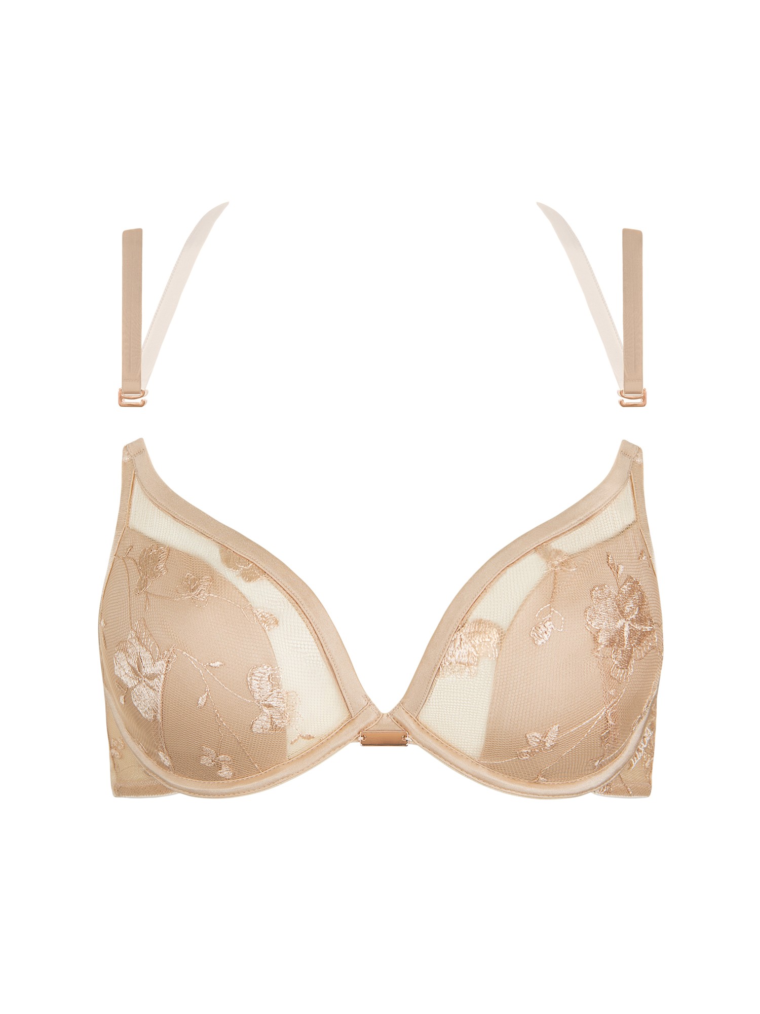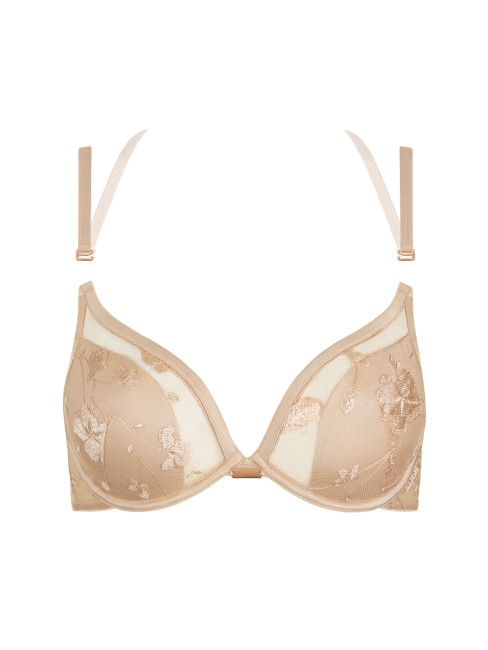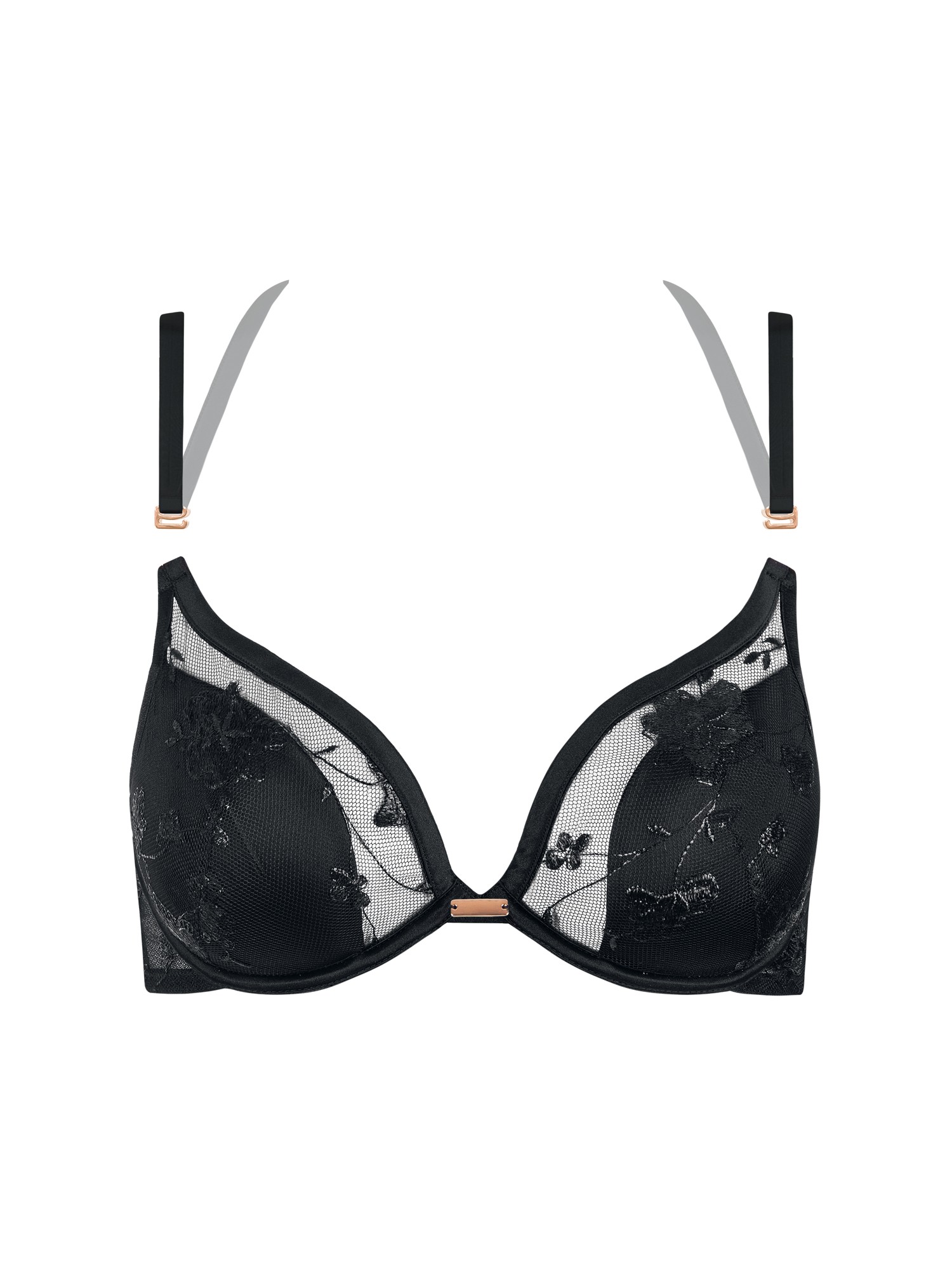 Soutien-gorge armaturé avec bonnets triangulaires cousus en tissu brodé, doublés de mousse pour un meilleur maintien. La partie centrale est échancrée pour un look décontracté. Tissu de base décoratif avec broderies et dos doublé pour une plus grande fonctionnalité. Les bretelles sont amovibles et multipositions : elles peuvent être portées de manière classique ou attachées autour du cou. La bande de fermeture et les bretelles sont réglables dans le dos pour un ajustement parfait, et plus larges dans les grandes tailles pour un confort optimal.