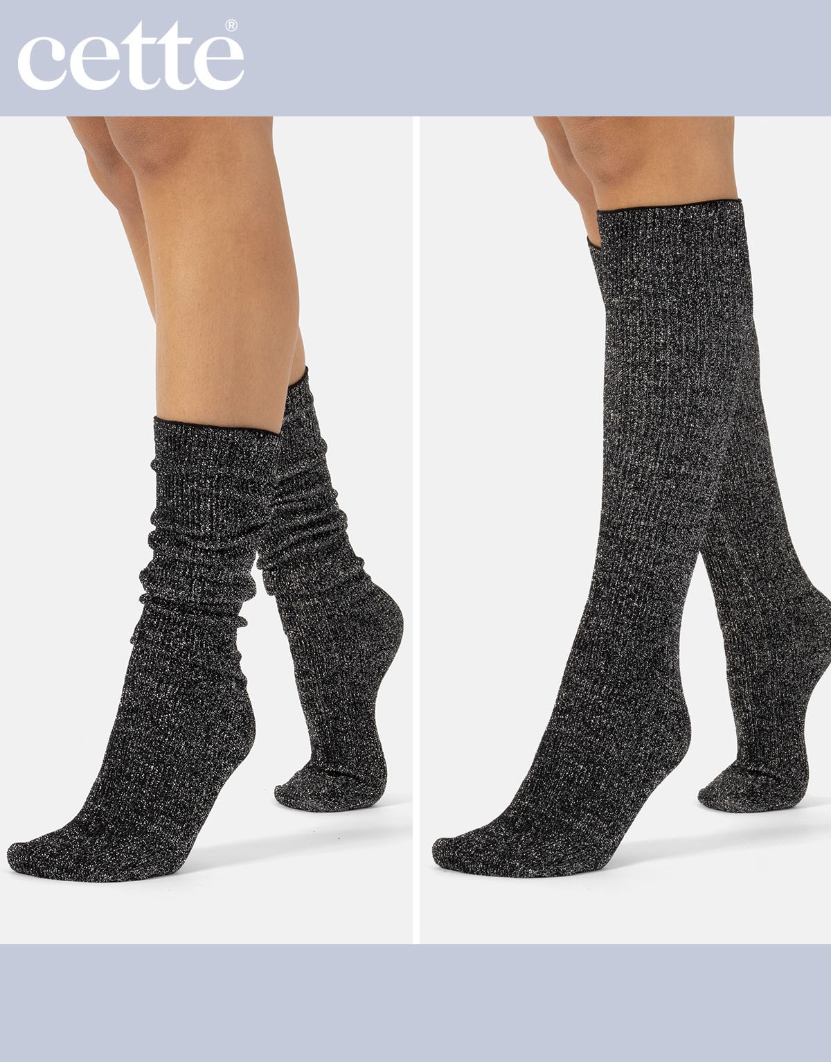 Essayez-les comme des chaussettes souples, enroulées aux chevilles avec un t-shirt oversize pour un look assez décontracté, ou remontées avec un look de fête élégant : vous ne passerez pas inaperçu.
