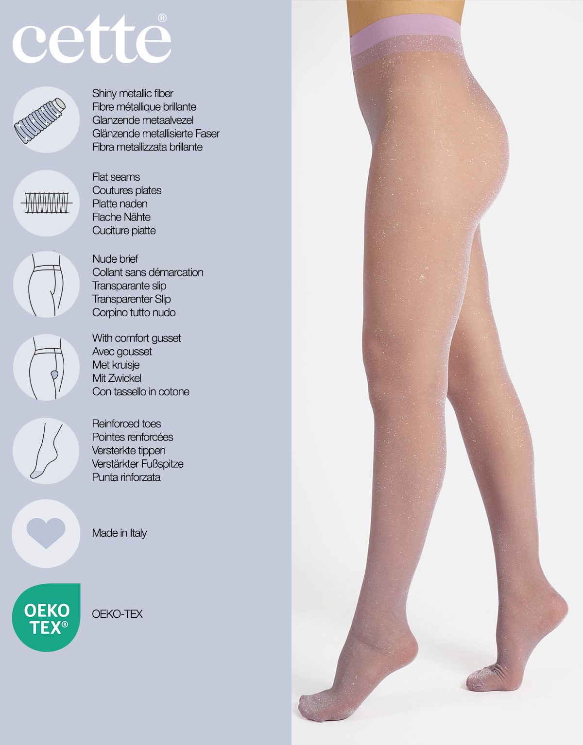 Collants Lurex, gousset coton, ligne nue, pointes renforcées, coutures plates.