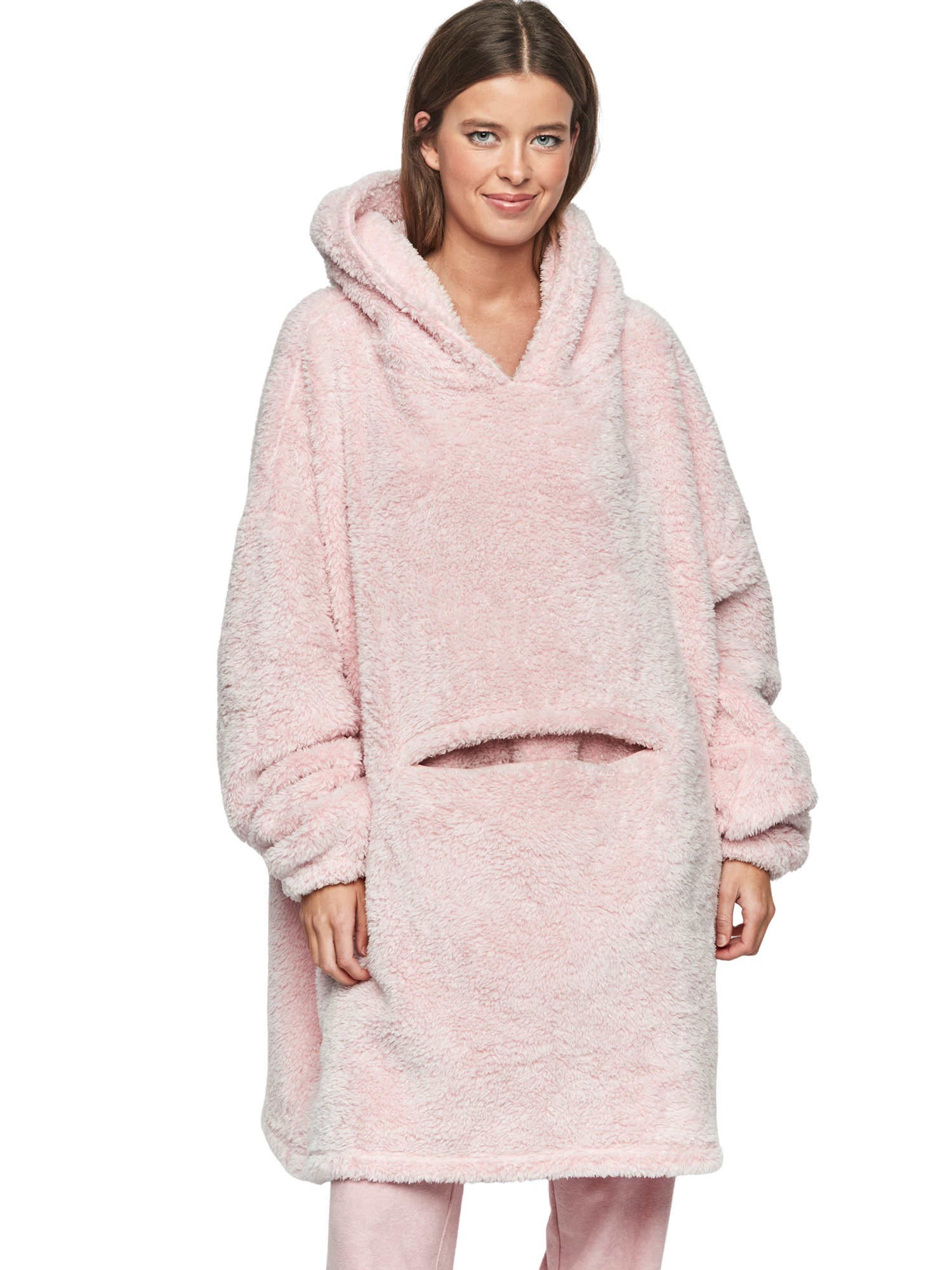 Superbe tenue d'intérieur cocooning dans une coupe très large de sweatshirt, ultra confortable et moelleuse grâce à son doux tissu éponge. Elle est accompagnée d'un petit coussin en forme de coeur qui se range dans la poche ventrale et qui vous offrira un confort optimal dans toutes les pièces de la maison où vous souhaitez vous détendre. Elle a des manches longues et une capuche non réglable pour une touche sportive. Elle deviendra votre favorite pour les soirées canapé-cinéma ou pour les journées décontractées à la maison. Un must-have pour des moments de détente ultra agréables et molletonnés.