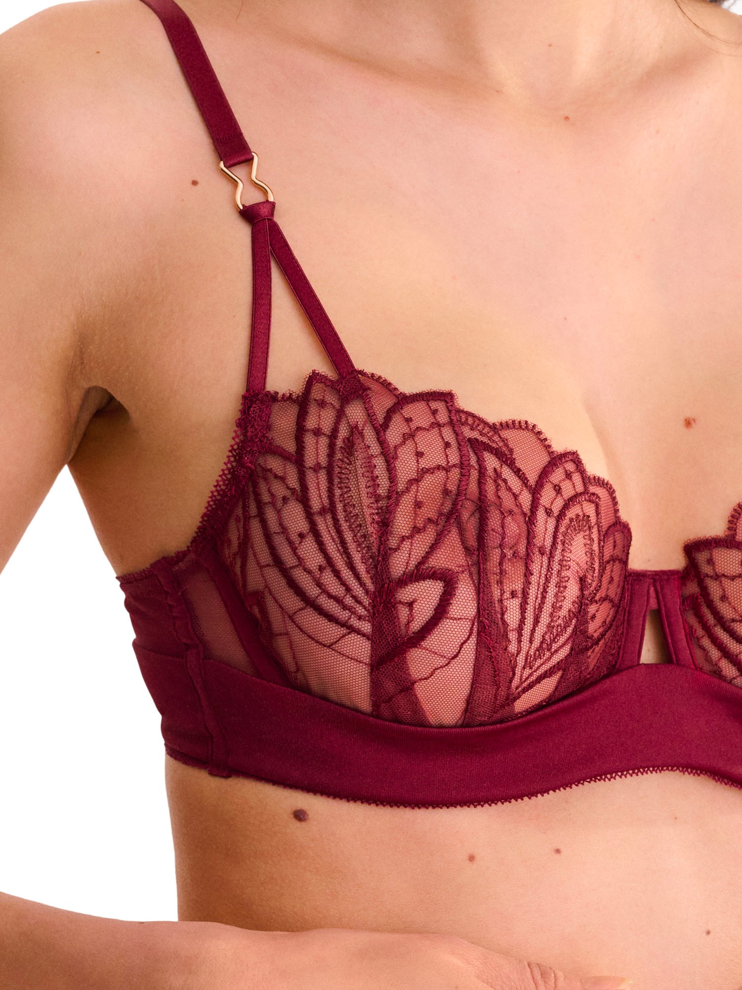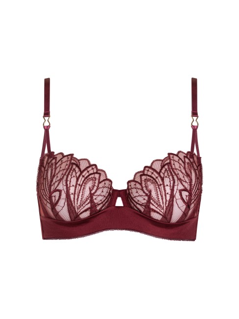 Soutien-gorge armaturé léger avec bonnets à ourlet brodé. Les bonnets à trois superpositions cousues assurent une belle forme et un ajustement parfait. Détail sur les bretelles à l'avant avec un accessoire métallique personnalisable pour les grandes tailles. Le détail de l'ourlet sous les bonnets qui se prolonge dans le dos offre un look parfait. Doublure double à l'arrière. La bande de fermeture et les bretelles sont réglables dans le dos pour un ajustement parfait, et plus larges dans les grandes tailles pour un confort optimal.