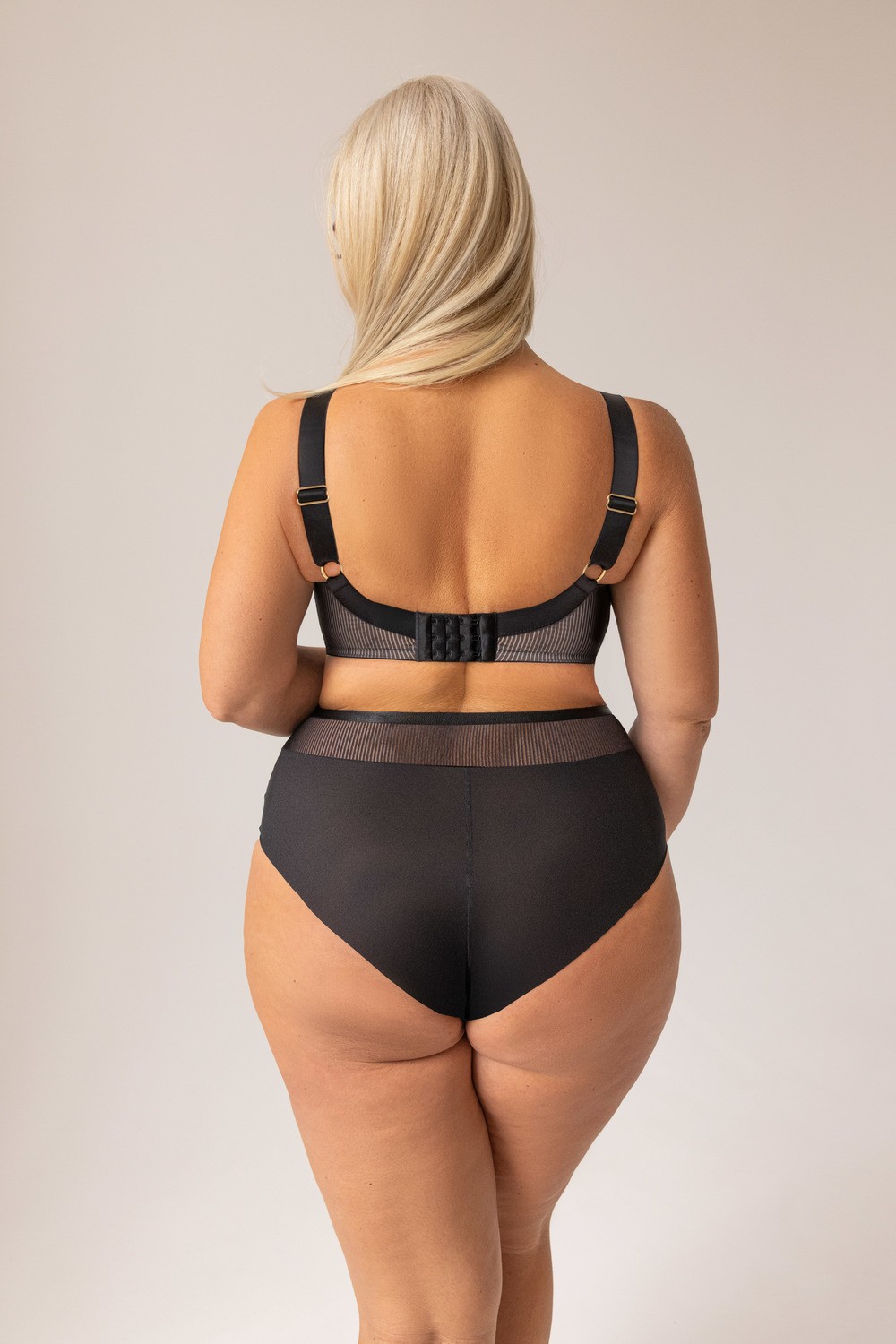 , dédiée aux femmes qui aiment sublimer leurs atouts. Ce soutien-gorge souple est idéal pour les poitrines généreuses qui recherchent des bonnets confortables et délicatement structurés. Le bonnet évoque un panier en dentelle, surmonté de tulle. Il se compose de trois parties : deux parties inférieures et une partie supérieure. L'ensemble est soutenu par un tissu mousseline stabilisateur. Le soutien-gorge galbe et galbe la poitrine avec élégance. Sa coupe sensuelle assure un confort optimal pendant des heures.