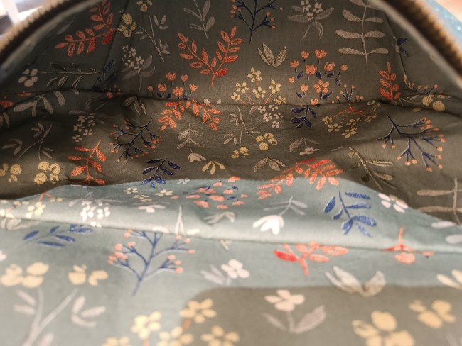 - Au dos, poche zippée d'environ 20 cm de long et 11 cm de haut, soulignée par un passepoil argenté, idéal téléphone.