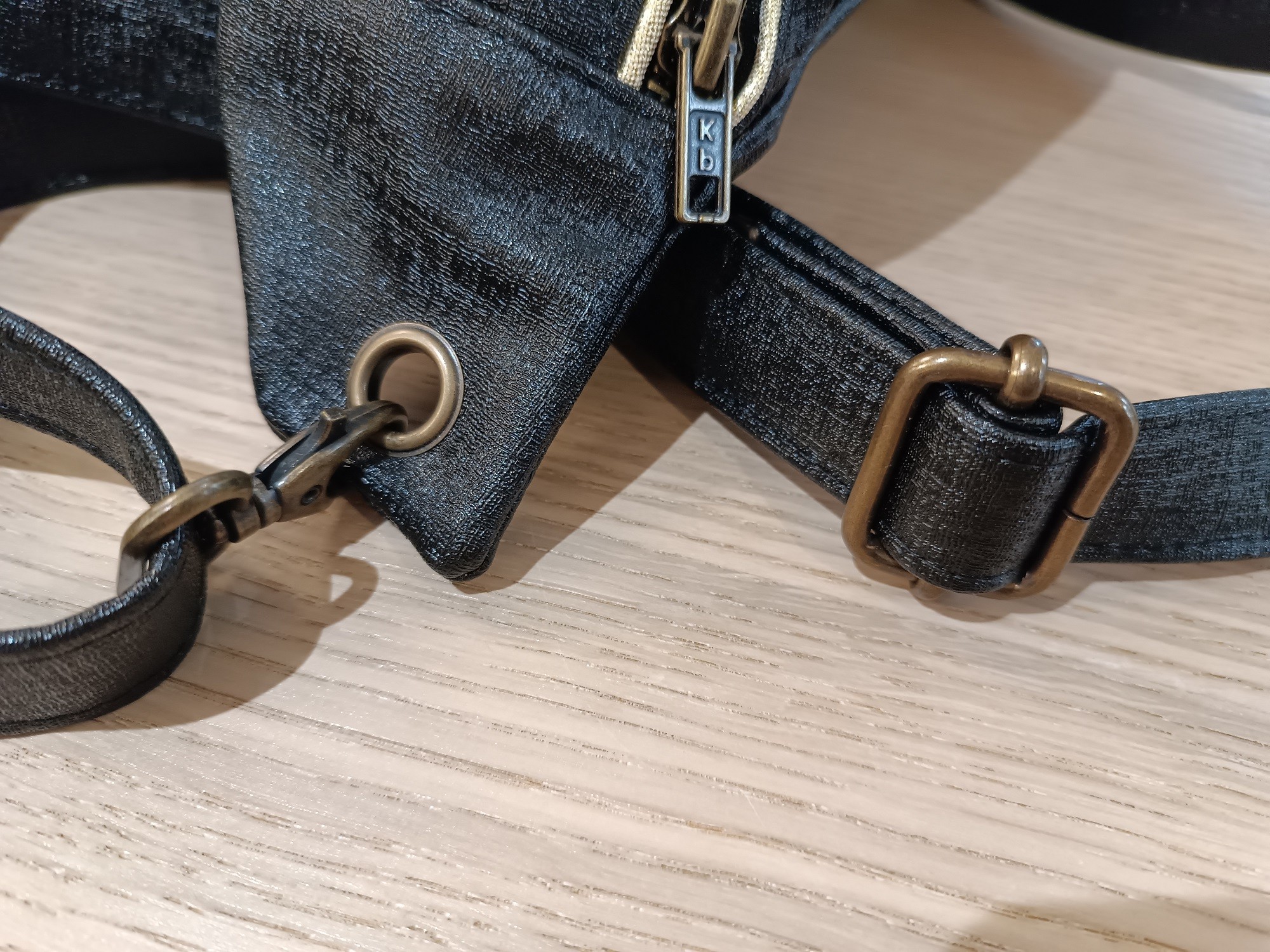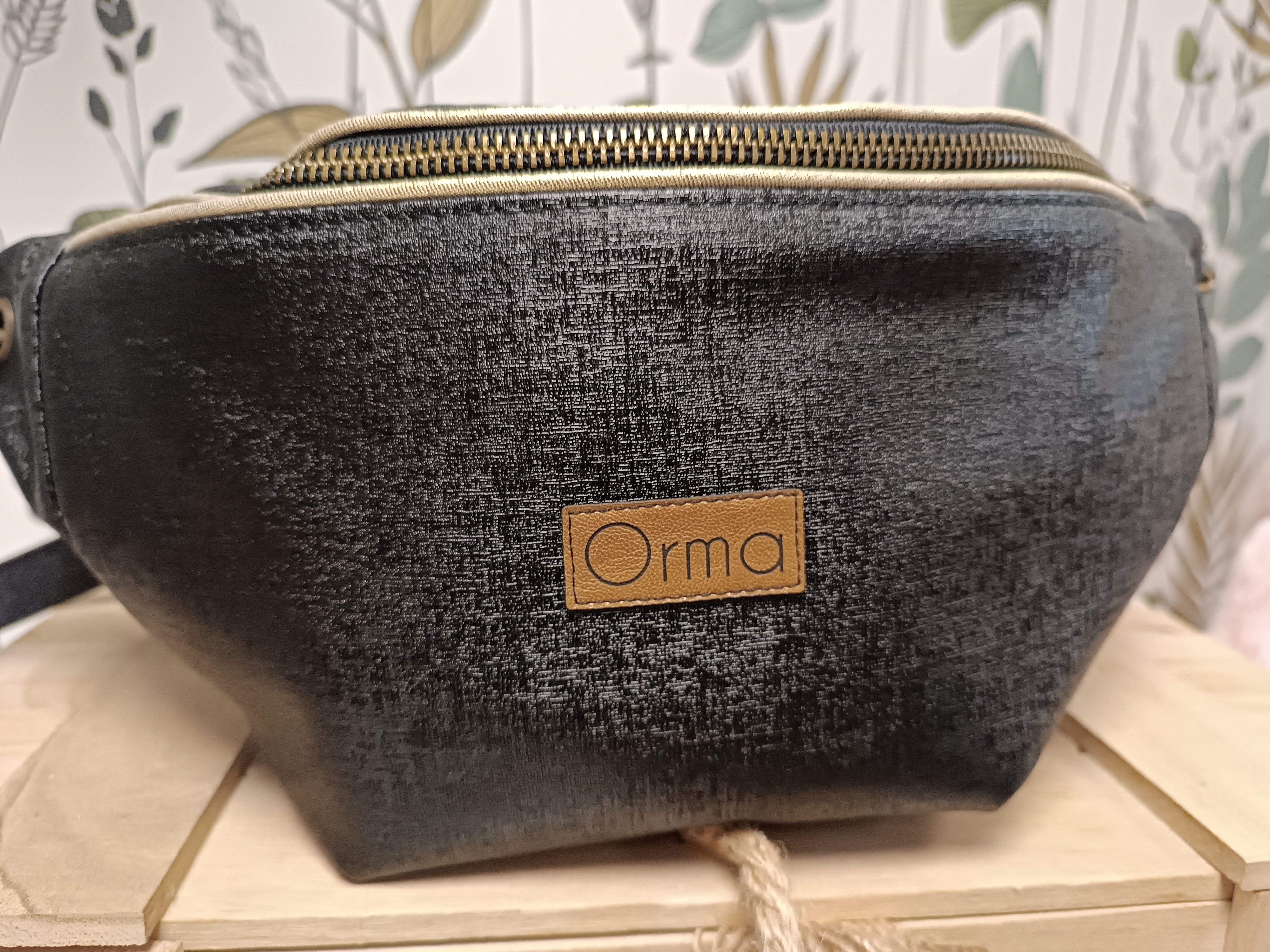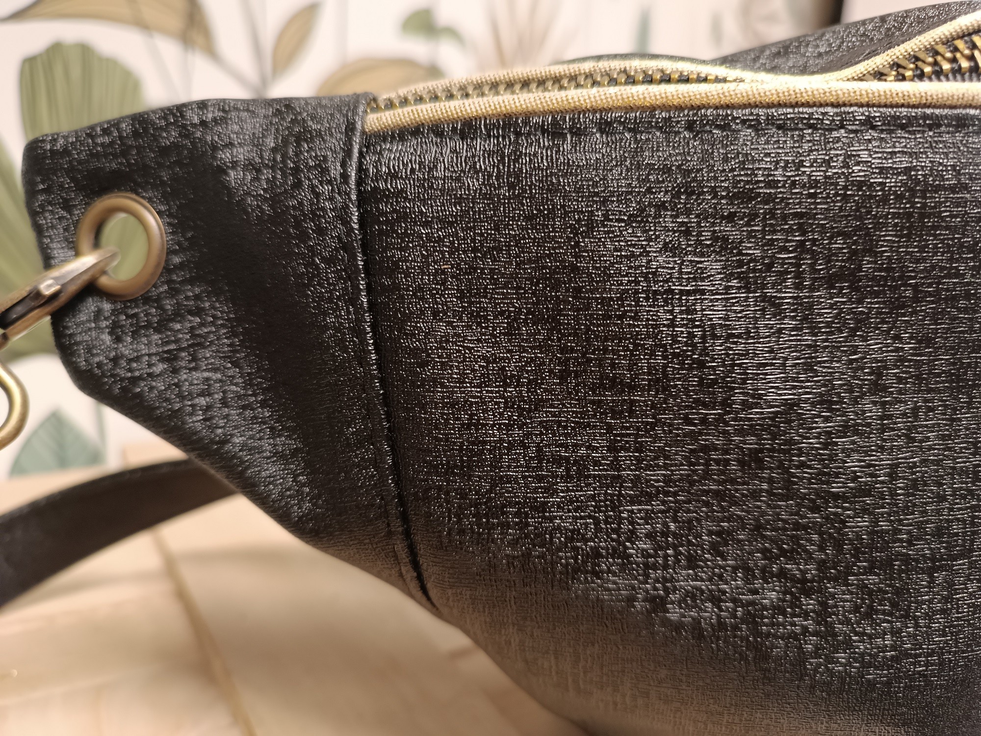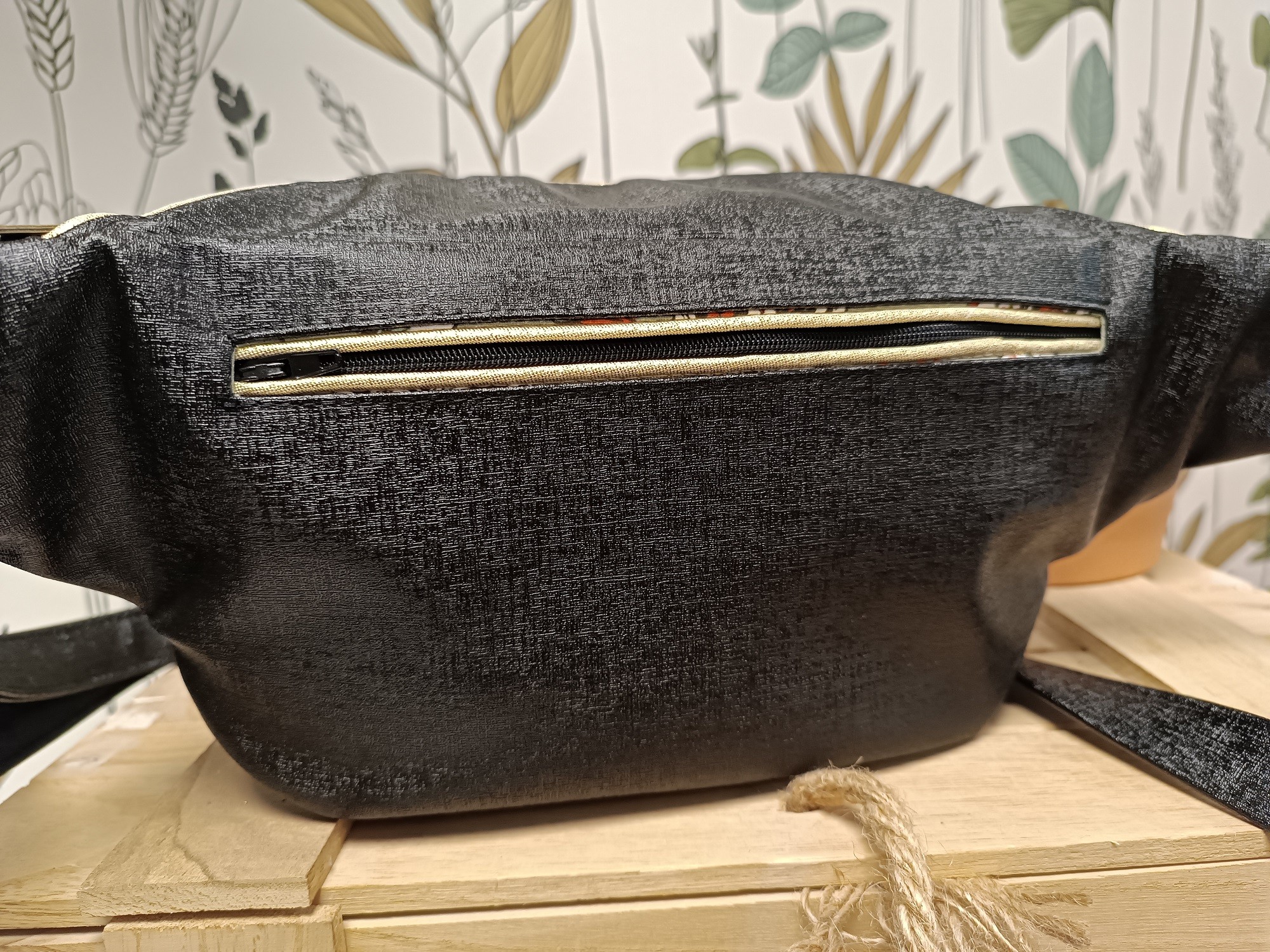 Sac banane, sac bandoulière, simili texturé noir, passepoil doré