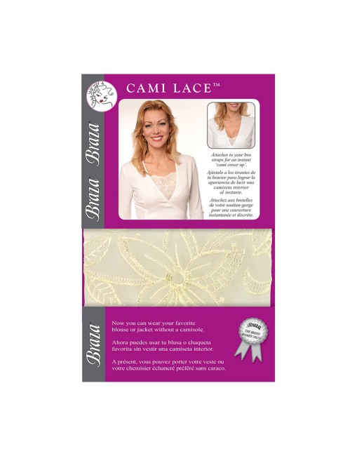 - Attachez simplement le CAMI LACE aux bretelles de votre soutien-gorge et en un instant, vous semblez porter un caraco..