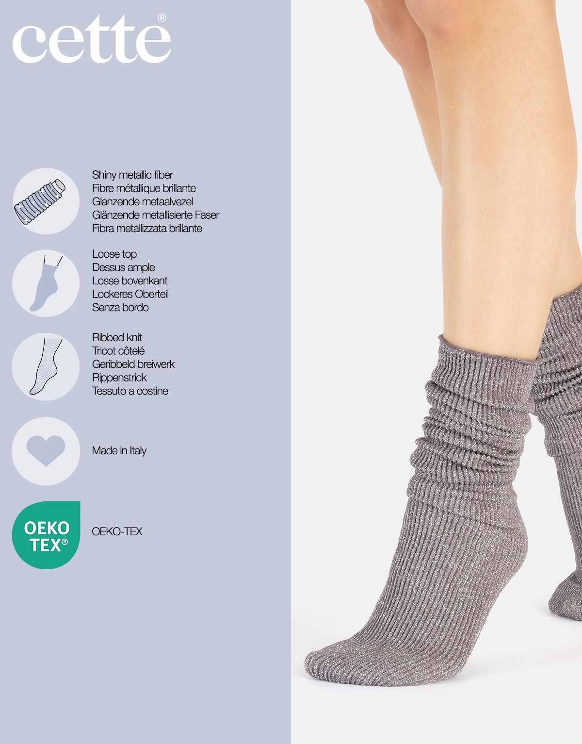 Chaussettes fabriquées en Italie avec certificat Oeko-Tex