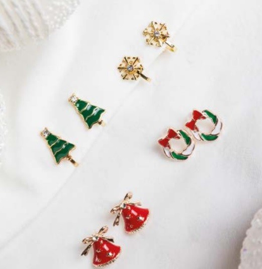 Paire de boucles d'oreilles NAVIDAD FANTASIA, coloris SAPINS, FLOCONS, CLOCHETTES ou COURONNES, rèf : 69172SA