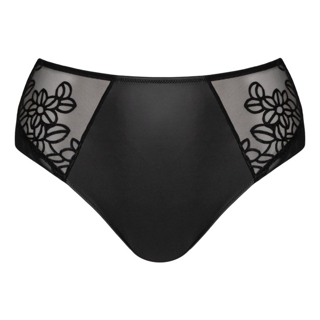 Culotte taille haute assortie à notre magnifique soutien-gorge Enchant. Culotte taille haute en similicuir mat avec empiècements brodés de fleurs