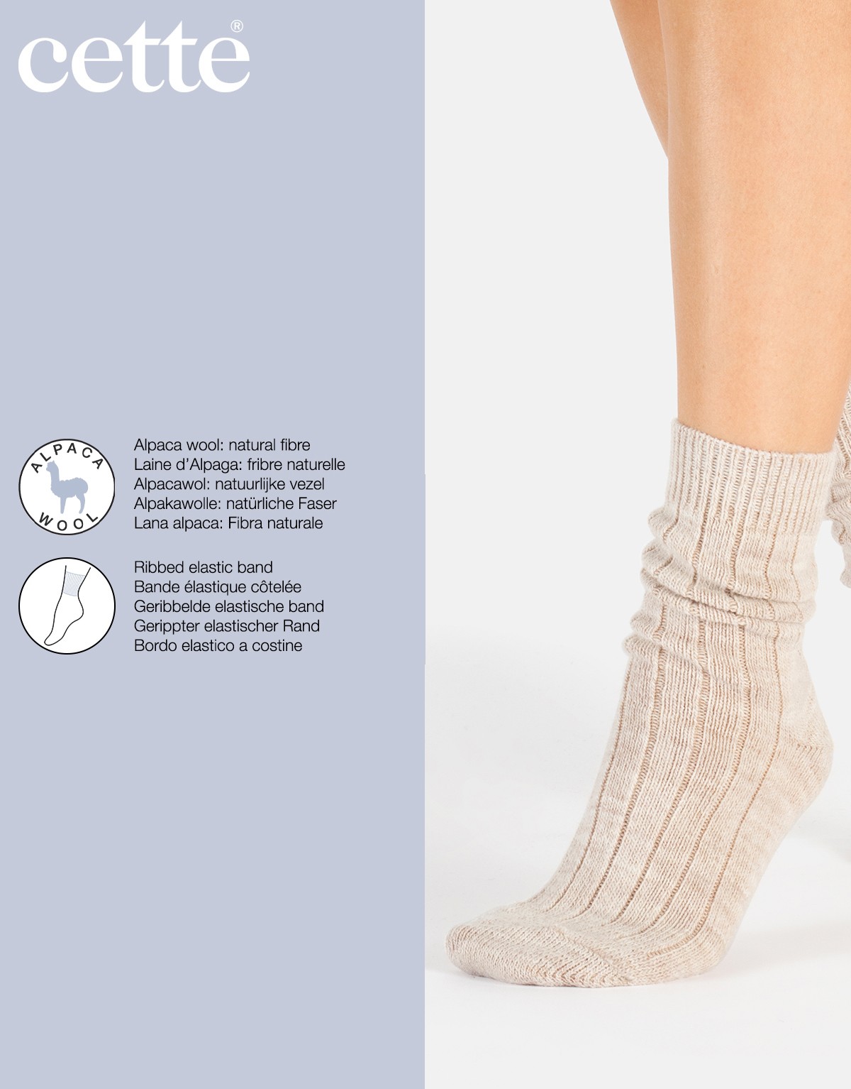 Chaussettes en laine d’alpaga côtelées avec bord confortable.