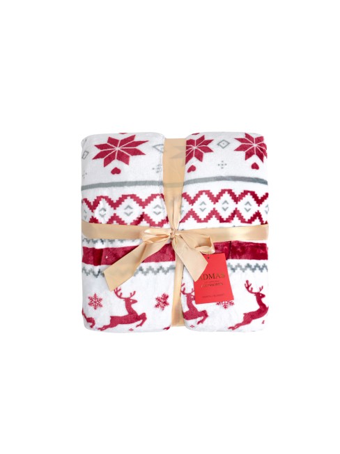 Dimensions : 127 x 152 cm. Couverture avec deux couches de tissu : une face polaire Corel au toucher ultra doux, et une face unie ivoire sherpa effet "mouton" douillette et moelleuse pour vous offrir chaleur et réconfort dans des instants cocooning parfaits. Elle est ornée d’un motif en frises colorées avec des étoiles et des guirlandes de divers ornements rappelant les fêtes de Noël. Elle pourra être utilisée pour s'envelopper de douceur sur le canapé, pour apporter une couche de chaleur supplémentaire à son lit, ou tout autre usage pour des moments de détente inoubliables. Une couverture chaude, légère et confortable qui conviendra parfaitement pour l'hiver ou les nuits fraîches d'été. Idéale à offrir pour les fêtes de fin d'année.