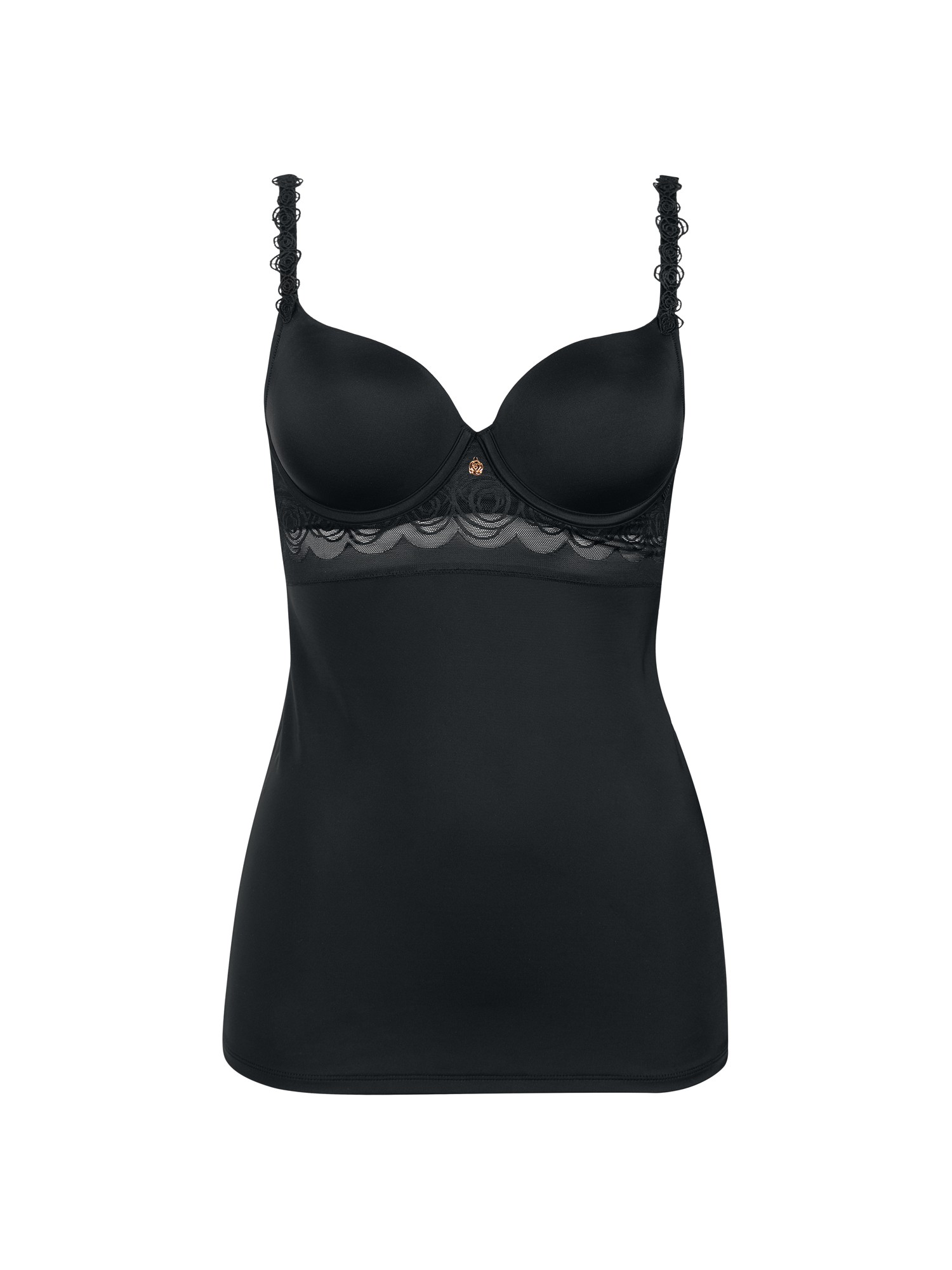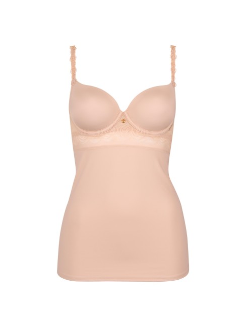 Modèle léger et féminin qui offre un confort quotidien. Bonnets préformés agréables dont l'intérieur est velouté et doux au toucher. Ils sont lisses à l'extérieur pour un look impeccable sous les vêtements. Sur l'avant, une fine bande de dentelle transparente, finement brodée de motifs floraux, vient souligner la poitrine et ajouter une touche de féminité et de sophistication. Les bretelles sont finement décorées de broderies florales pour encore plus de féminité. Elles sont réglables pour un ajustement parfait. Petit bijou décoratif entre les bonnets pour une finition élégante. Un modèle qui allie confort et esthétique, idéal pour une utilisation quotidienne tout en restant séduisant.