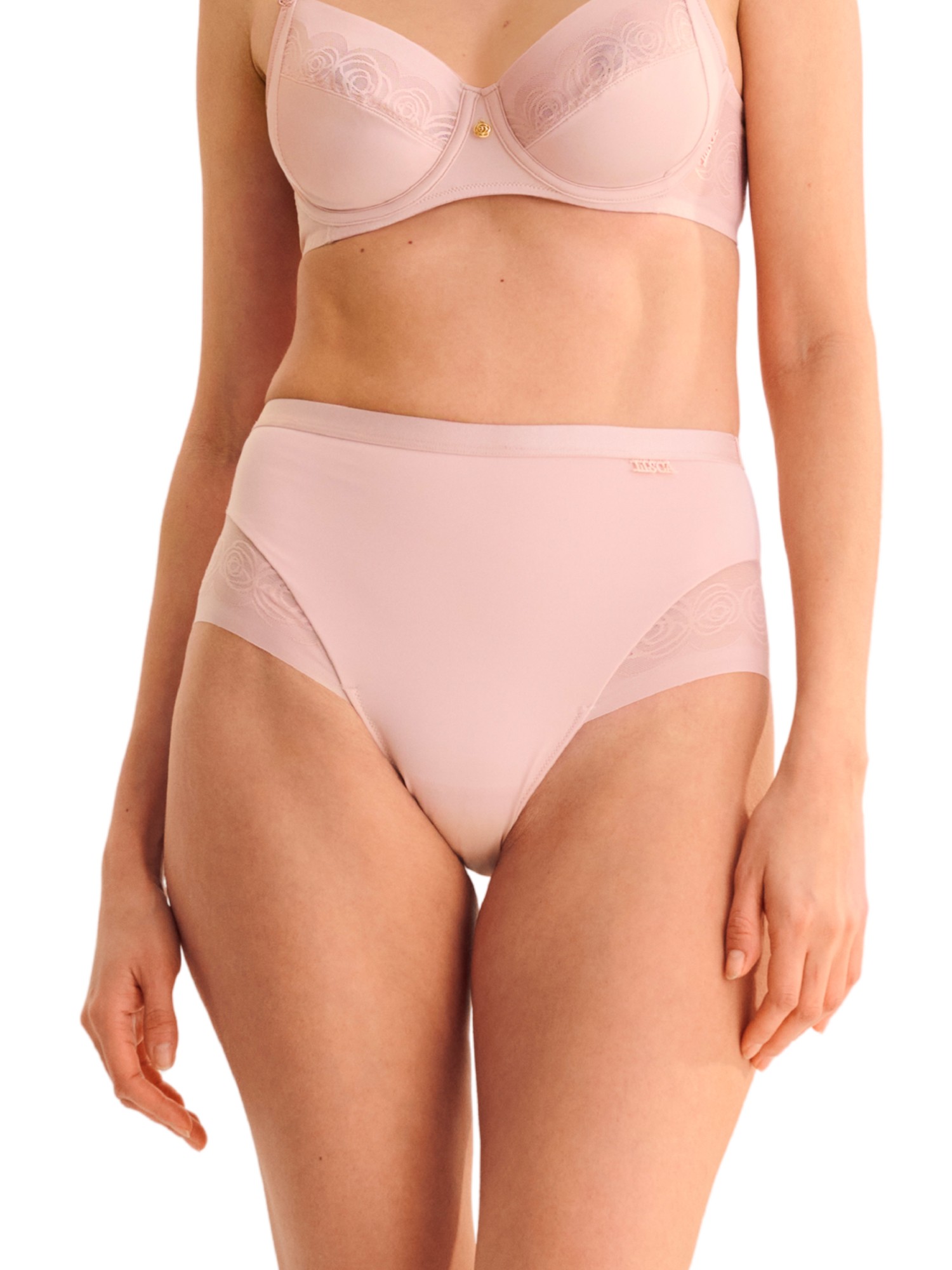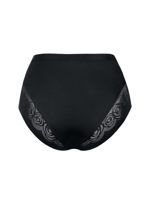Slip à taille haute dans un design shapewear romantique et confortable, galbant discrètement le ventre. Maille coton confortable et douce associée à des empiècements en dentelle transparente qui ornent les ourlets, finement brodée de motifs floraux, ajoutant une touche de féminité et de sophistication. Bande élastique décorative plate cousue à la taille pour un confort accru. Une fine bordure place et douce est cousue dans les ouvertures des jambes pour un look sans coutures sous les vêtements. Lingerie séduisante pour un confort quotidien. Gousset en coton pour un confort intime garanti.