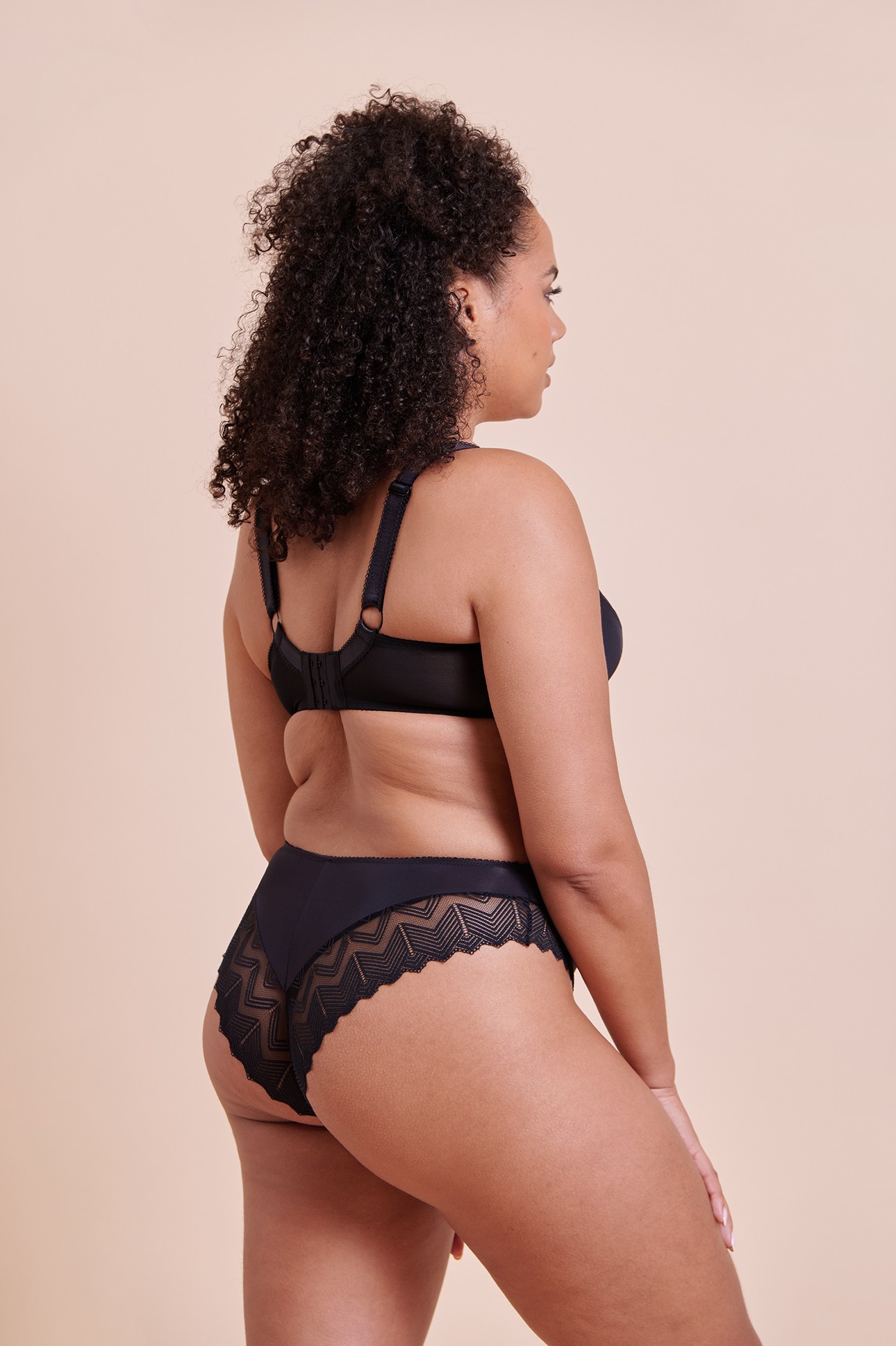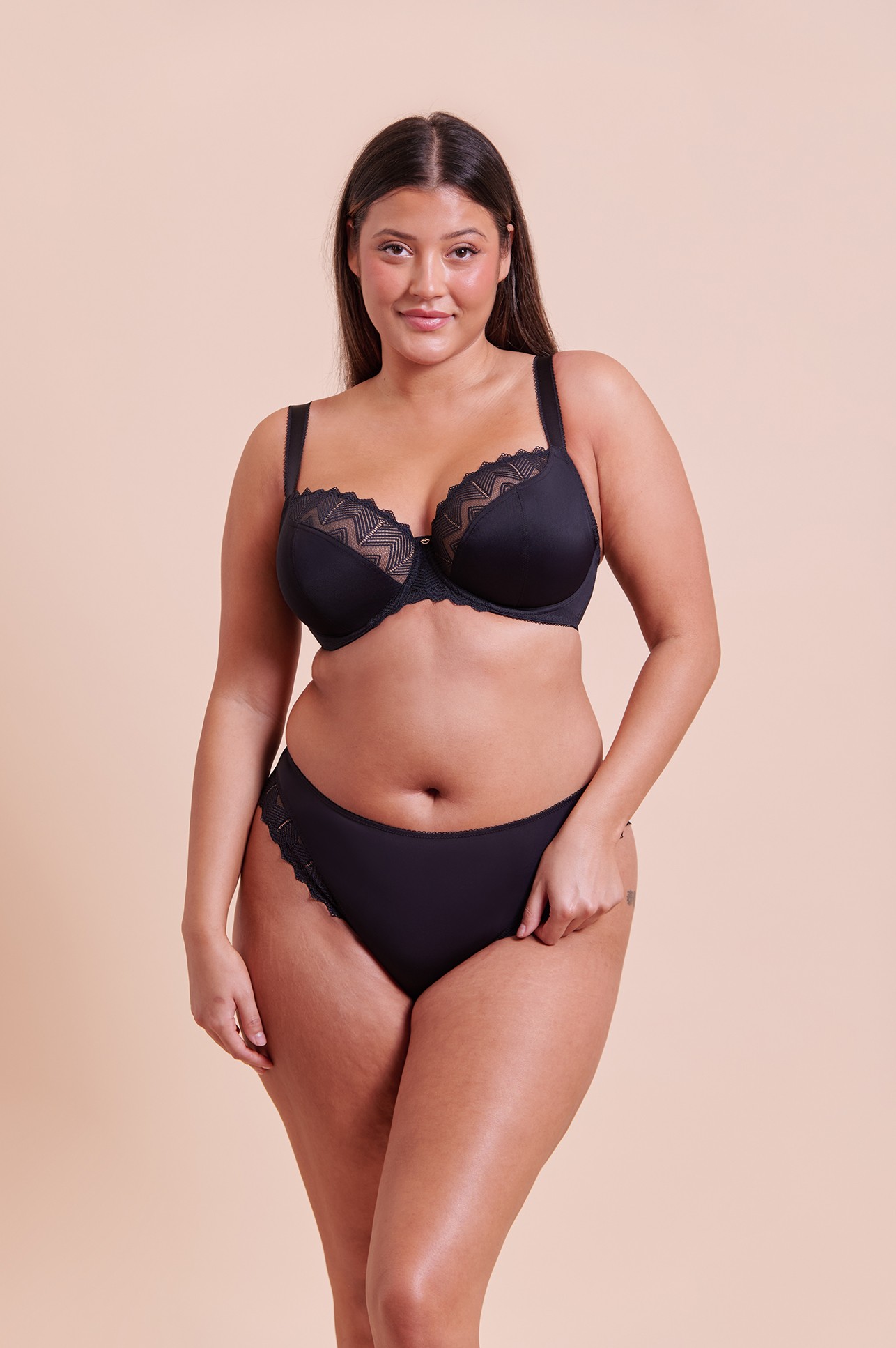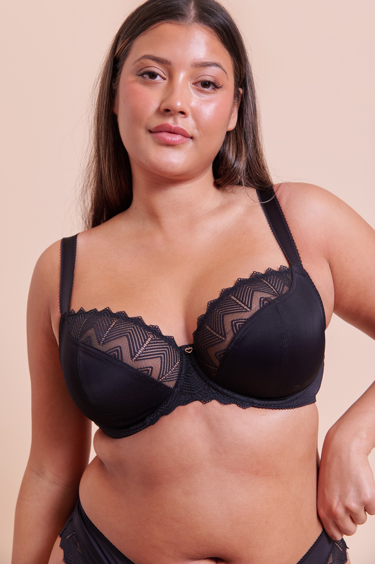 Wild One en noir fait une entrée fracassante : ce magnifique soutien-gorge balconnet en dentelle géométrique extensible offre confort et maintien.