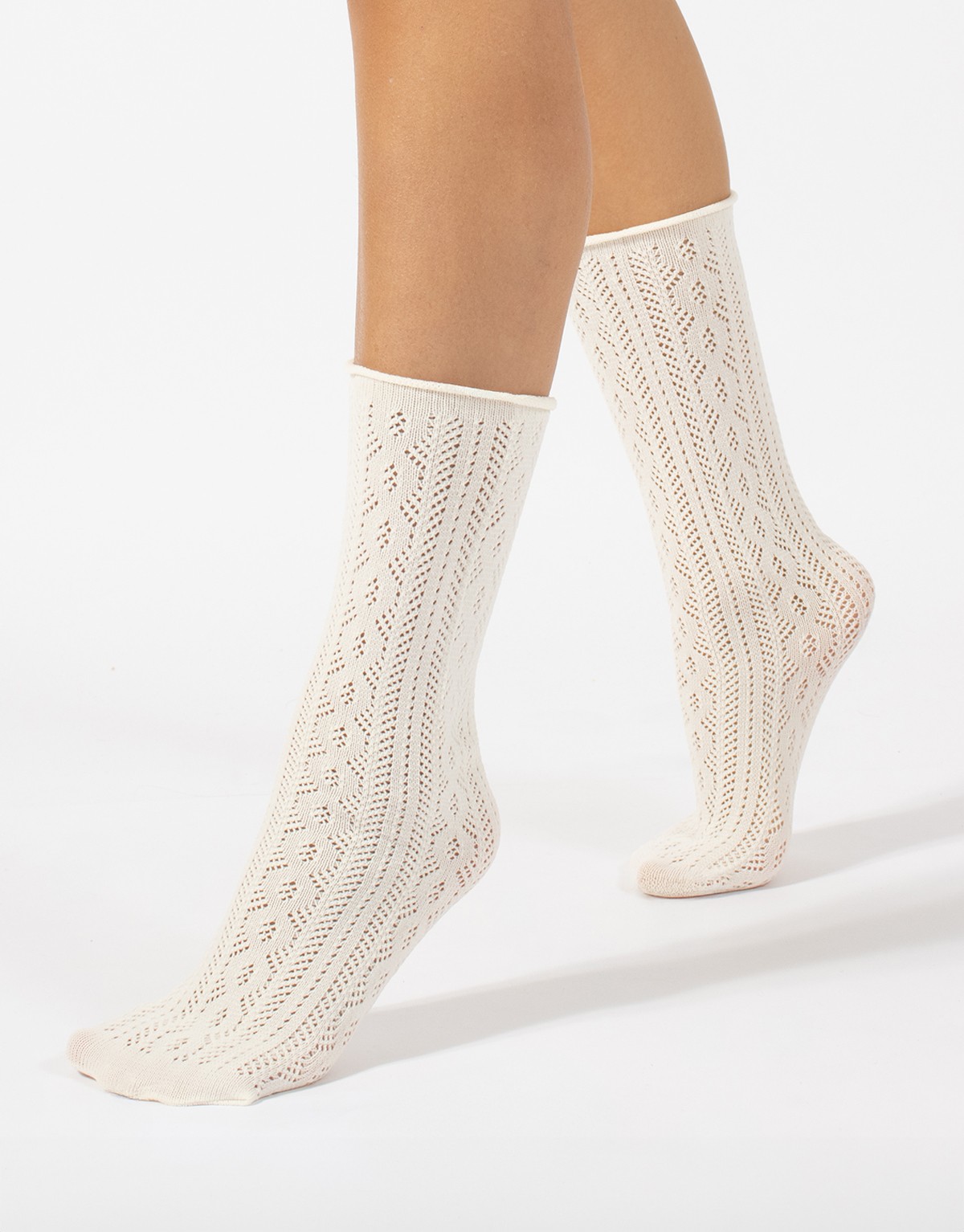 Paire de chaussettes ajourées sans bord ORION ECRU