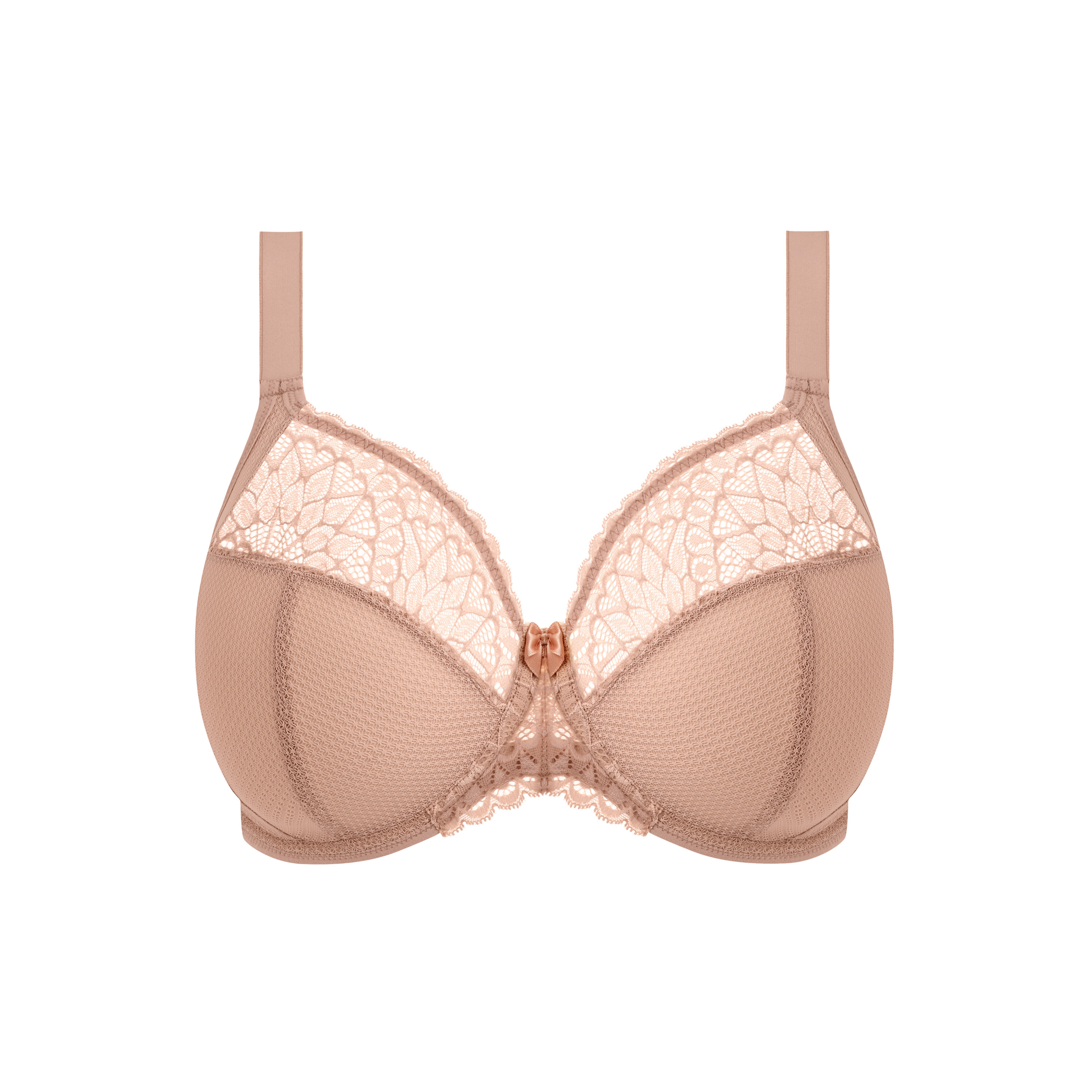 Tiernie présente un superbe motif en forme d'éventail, confectionné dans une délicate dentelle stretch mais tonique afin d'assurer une application sans pareille. Sa bande sous la poitrine est enveloppée d'un élastique souple à rabat pour un confort infini au quotidien, tandis que son entre-seins en dentelle stretch flotte sur le bord inférieur pour ne pas creuser la peau.