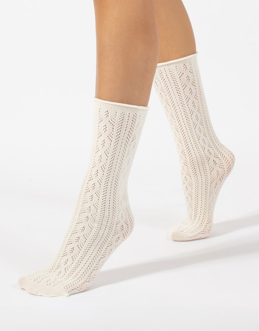 Paire de chaussettes ajourées sans bord ORION ECRU
